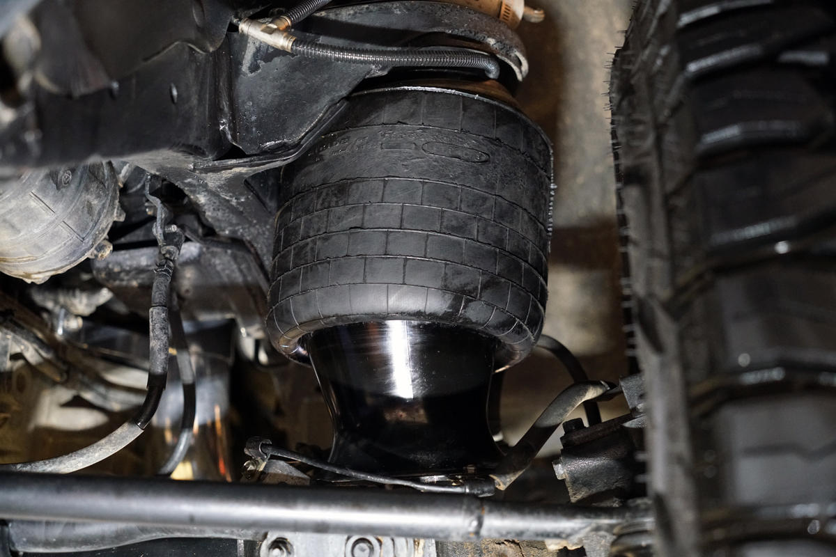 Coil springs replaced with airbags to allow full height adjustment, on-board air controls recommended.